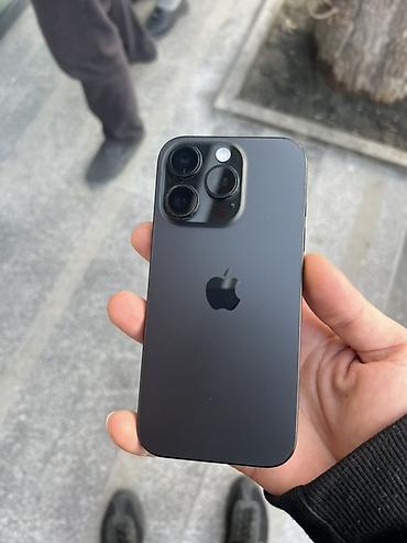 Apple iPhone (Pro seriyası) - Rəng: Qara/Space Black - Korpus: paslanmayan polad çərçivə, mat şüşə arxa panel, yastı kənarlar - Ekran: Dynamic Island kəsiyi olan tam ekran OLED; həssas Always‑On k...