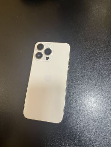 Apple iPhone (Pro seriyası) - Rəng: qızılı/bej ton - Korpus: cilalanmış metal çərçivə, şüşə arxa panel - Ekran: tam ekran OLED, Dynamic Island kəsiyi - Kamera sistemi: arxada 3 linzalı pro kamera ...