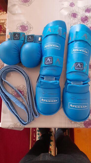 Karate məşqləri və turnirlər üçün tam uyğun mavi Arawaza qoruyucu komplekt. ayaqlıqla kəmər təzədir 2 dəfə taxılıb kəmər biraz işlənib qiymət sondu Gəncədə qalıram