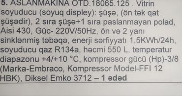- Kafelər, şirniyyat evləri, marketlər, deli və fast-food nöqtələri üçün məhsulların soyudulmuş vitrində nümayişi. Yenidi pakofkadi işlənmiyib.