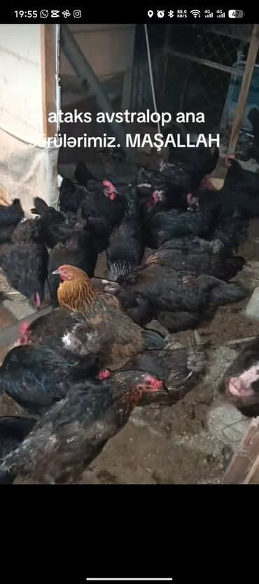 Temiz qan avstrolop cuce ve yumurta satisi edilir.Sekilde gorduyunuz damazliq heyvanlardi.cuceler 3gun mayalandirilib verilir.cucenin qiymeti 3 azn. yumurta qiymeti 1.5 azn.maraglananlar whatsappa ...