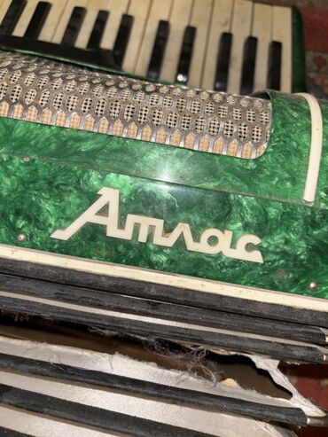 Məhsul: “Atlas” akkordeon Xüsusiyyətlər: - Korpus: yaşıl inci naxışlı örtük, klassik dizayn - Klaviatura: sağ tərəfdə pianino tipli klavişlər - Bas bloku: sol tərəfdə çoxsıralı bas düymələri - Qri...