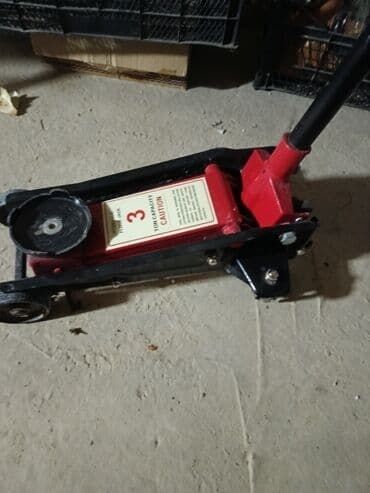 - 3 tonluq hidravlik domkrat: aşağı profil, təkərli şassi, rezin dayaq yastığı, sürətli qaldırma qol mexanizmi.