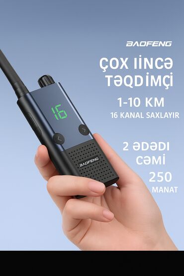 💥Yeni gələn simsiz Ratsiya. 👍1km məsafədən rahatcılıqla danışmaq. 📶Tutum məsafəsi 1km. 🛜Rahat danışmaq olur. ✔️Səsi çox aydın şəkildə ötürür 🔋Zaryatqayla işləyir. ✔️1 sarjla 12 saat danışmaq olur. ...