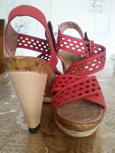 İkinci əl ayaqqabı, az geyinilib. 39 razmer. Hündürlüyü 8sm. (Tünd qırmızı rəng). barter mümkündür.