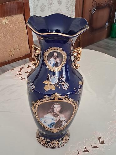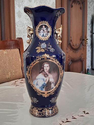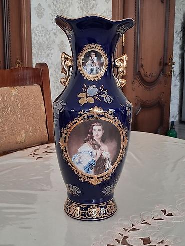Böyük dekorativ vaza – klassik üslubda qiymətdə razılaşma olar. - Material: qalın şüşə - Rənglər: kobalt-mavi gövdə və parlaq qızılı örtük - Bəzək: əl işi çiçək ornamentləri, relyefli qızılı naxışl...
