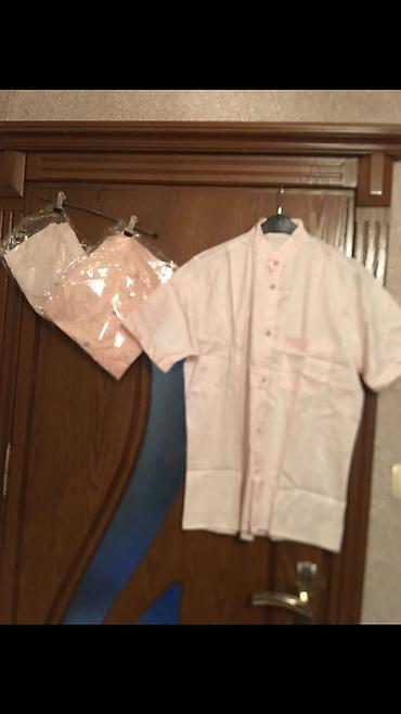 - Kişi köynəkləri: Qısaqol, stend (mandarin) yaxalı klassik köynəklər. Ön düyməlidir, döş cibində kontrast, açıq boz xətt detalı var. Açıq ağ və açıq çəhrayı rəng variantları görünür. Yüngül parça, isti mövsümlər və iş-gündəlik tərz üçün rahat seçimdir. Bəzi ədəd qablaşdırmada.