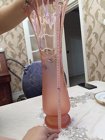 Qedimi guldan - Brend: Bohemia Glass (etiket üzərində qeyd olunub) - Material: şüşə - Dizayn: uzunsov, dar boğazlı dekorativ vaza - Rəng: çəhrayı tonlarda korpus, qızılı vurğular və halqa formalı ...