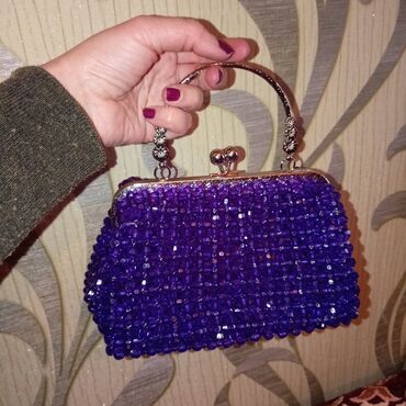 EndirimsizBənövşəyi rəngli, daş-şüşə muncuqlarla hazırladığım zərif əl çantası. Əl işimdir