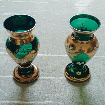 🔴- 2 ədəd uyğun dizaynlı yaşıl-qızılı kristal vaza, orijinal Bohemia nişanlı etiketlərlə.//////// Vazaların hər biri bir-birindən gözəldir və Yenidir✅✅/////// Əla vəziyyətdədir ✅✅/////// Əlaqə üçün: zəng və ya mesaj ☎️✉️✅////// ⏰7/24 saat....... xidmətinizdəyik.