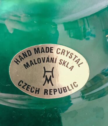 🔴- Çex Respublikasında istehsal olunmuş “Bohemia Crystal” əl işidir (etiketlər üzərində: “HAND MADE 🔴CRYSTAL – MALOVÁNÍ SKLA – CZECH REPUBLIC”, “Bohemia Crystal 🔴– Made in Czech Republic”)..