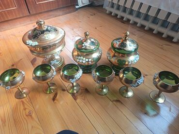 - 6 ədəd ayaqlı bokal/kadeh (yaşıl içlikli)