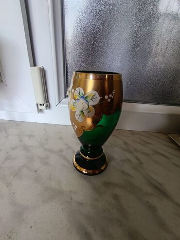 - Material: qalın yaşıl şüşə, üzərində 24K qızılı tonlu örtük və relyef əl boyası çiçək ornamentləri