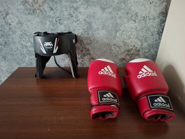 Boks üçün tam dəst - Marka: Adidas - Rəng: qırmızı - Dəst tərkibi: - Boks qutusu/çəkmə üçün kiçik zərbə çantası (asılqan lentləri ilə) - Döyüş kaskı (baş qoruyucu) - Biləyə bərkidilən velkro...