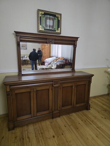 - Komplekt: yuxarıda böyük çərçivəli divar güzgüsü, aşağıda geniş bufet şkafı