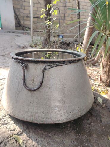 Böyük metal qazan/kazan - Material: qalın metal mis qazan(dökümə yaxın), zəncirli üst kənar və hər iki tərəfdə möhkəm qulp - Forma: enli altlıq, yuxarıya doğru daralan konusvari gövdə - İstifadə t...Giriş•Qeydiyyat