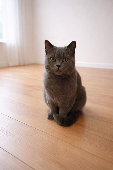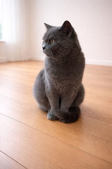 Boz tüklü ev pişiyi – zərif və sakit xasiyyətli - Rəng: vahid tünd-boz (bürünc alt tonlu), qısa və sıx parlaq yun - Gözlər: sarı-yaşıl tonlarda, ifadəli - Qulaqlar: orta ölçülü, dik - Bədən qurulu...