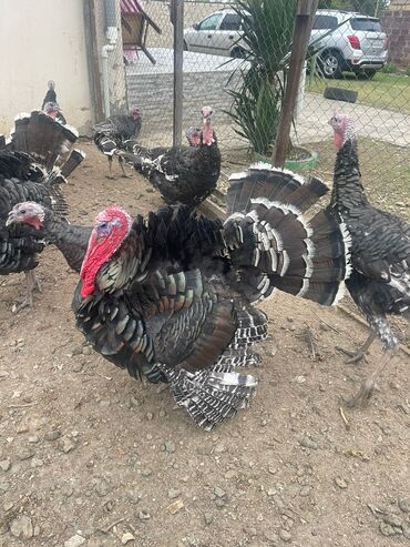 Məhsul: Hinduşka sürüsü Təsvir: - Şəkillərdə gördüyünüz damazlıq yönümlü hinduşkalar iri cüssəli, güclü döş əzələləri və sıx, parıltılı tük örtüyü ilə seçilir. Qara-bürünc (bronza) və ağ rəngli fə...