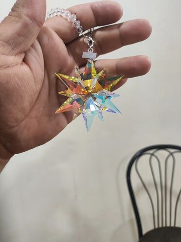 - Material: şəffaf və iridescent effektli kəsimli büllur/şüşə prizmalar