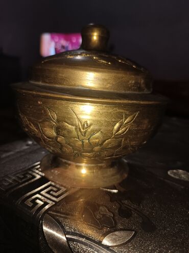 Məhsul: Qapaqlı bürünc qab (oyma naxışlı)