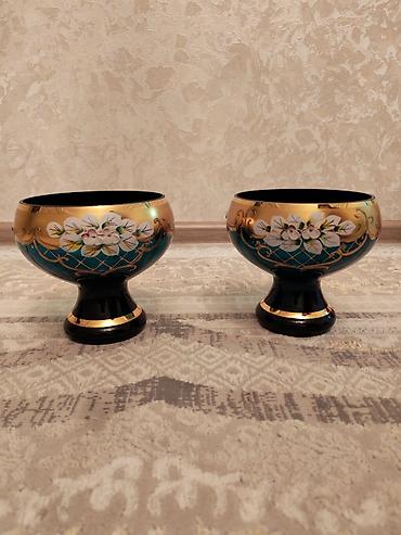 Bəzəkli şüşə qablar (2 ədəd set) - Material: qalın şüşə - Rəng