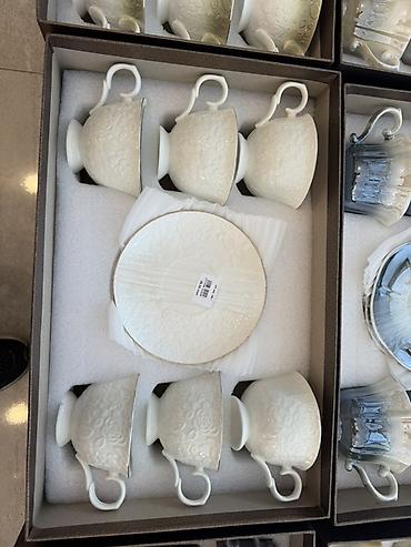 - Komplekt: 6 fincan + 6 boşqab (ümumilikdə 12 hissə). Hər dəst qutuda səliqəli şəkildə qablaşdırılıb.