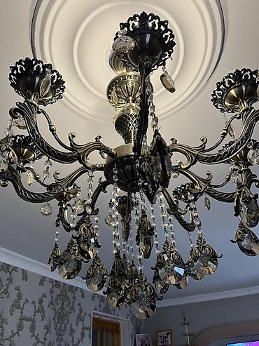 Metal-kristal asma çilçıraq 077-589-33-35 real aliciya endirimd eolunacaq - Stil: klassik/neo-klassik - Material: mat qızılı/bronz tonlarda metal karkas, şüşə/kristal bəzəklər və prizmatik asqılar ...
