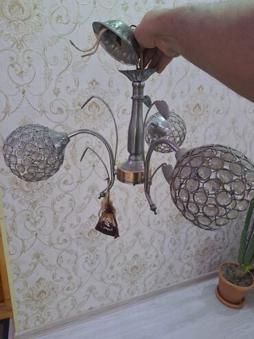 Üç şamlıqla təchiz edilmiş bu çilçıraq, hər bir şamlığın üzəri torlu metal korpuslu və üzərinə kristal disk bəzəkləri vurulmuş oval formalı lampa abajurları ilə fərqlənir. Metal gövdəsi və şam tutacaqları gümüşü rəngdədir və üst hissədəki dekorativ elementlər ilə tamamlanır. Bu çilçıraq qonaq otağı, yataq otağı və ya yeməkxana kimi müxtəlif interyerlərə uyğun gələn zərif işıqlandırma həlli təqdim edir.