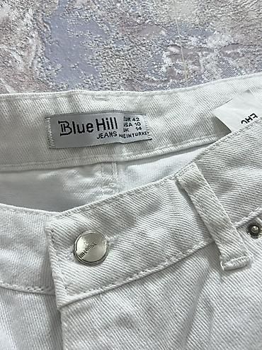 Miu Miu brendinin zərli detallarla bəzədilmiş mavi cins şalvarı -
