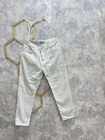 Miu Miu brendinin zərli detallarla bəzədilmiş mavi cins şalvarı - Model: geniş kəsimli, hündür belli cins şalvar - Rəng: açıq mavi yuyulmuş denim - Bəzək: ciblərin üstündə və ön şaquli tikiş xətlə...