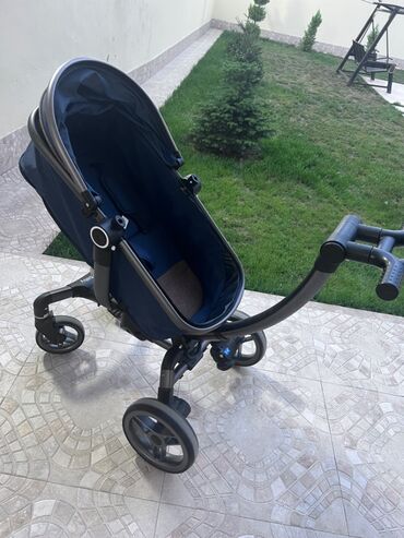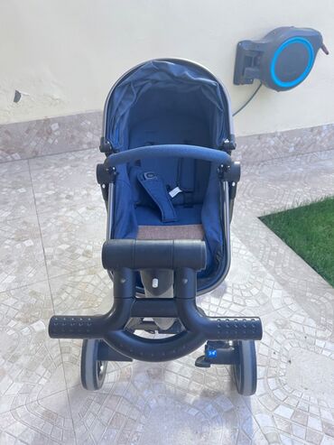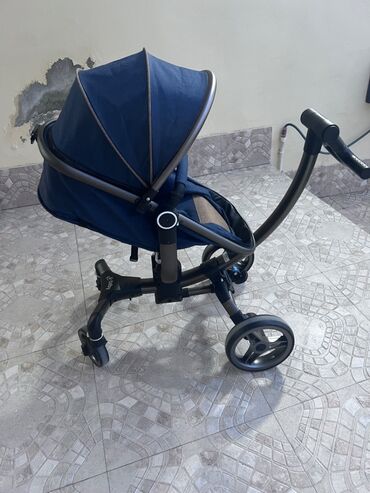 Mavi rəngdə, dörd təkərli, çoxfunksiyalı uşaq arabası. Bu araba körpənizin rahatlığı üçün nəzərdə tutulub, tənzimlənə bilən oturacaq və tutacaq hissəsi var. Asan idarə olunan təkərləri sayəsində şə...