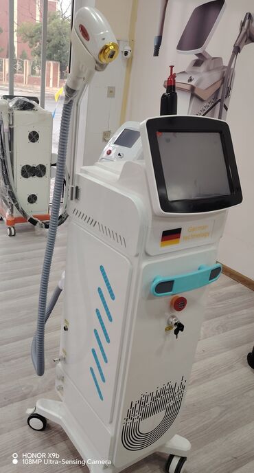 - Diod lazer epilyasiya sistemi (əl aparatında qızılı başlıq, güclü soyutma hortumu ilə).