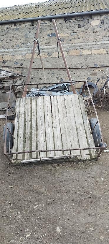 - İki təkərli təsərrüfat arabası/qoşqu: Metal çərçivə və ağac döşəmə, yuxarıda dartma üçün iki boru qolu. Yanlardan qoruyucu barmaqlıq. Bağda, həyətdə, tikinti materiallarının, odun və yüklərin daşınması üçün əlverişlidir.