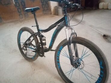 Dağ velosipedi – 26” təkərlər, disk əyləclər, amortizatorlu ön “fork”. - Çərçivə: yüngül və möhkəm alüminium tipli çərçivə, qara rəngdə mavi-qırmızı detallar. - Təkərlər: 26 düym dişli (off-road) ...