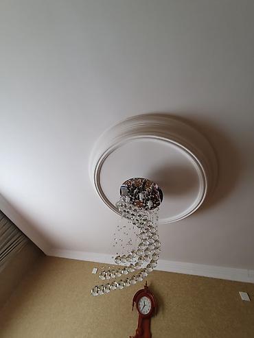- Kristal asma kompozisiyalı çilçıraq: parlaq xrom əsas, şəffaf kristal sferalardan spiral və ya dalğa forması ilə yığılmış asmalar; LED və ya E14/E27 lampalarla uyğun; dairəvi tavan rozetkası ilə estetik keçid. Qonaq otağı, zal və girişlər üçün dekorativ işıq effektləri yaradır.