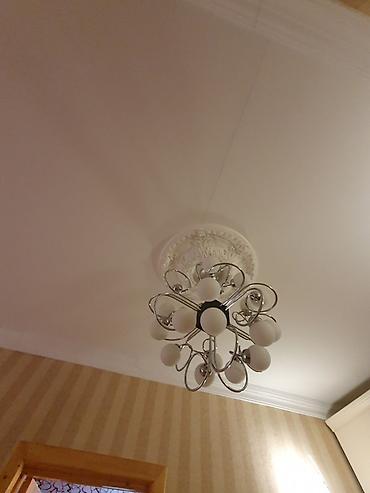- Müasir metal gövdəli çilçıraq: xrom rəngli dolama qollar, mat şüşə plafonlar; çoxlu işıq mənbəyi ilə bərabər işıqlandırma verir. Yataq otağı və koridorlar üçün uyğundur.