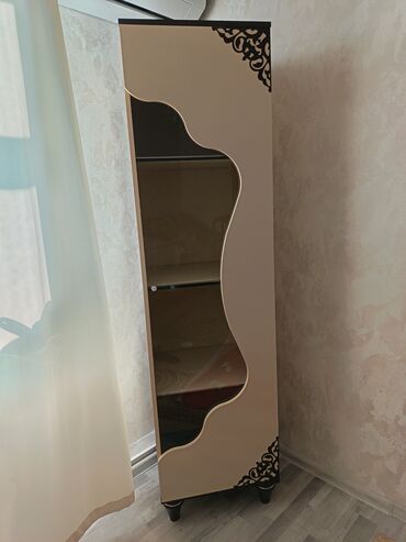 - Daxili quruluş: Şüşə qapılar arxasında bir neçə səviyyəli şüşə rəf; qab-qacaq, suvenir, kitab və dekorlar üçün uyğundur