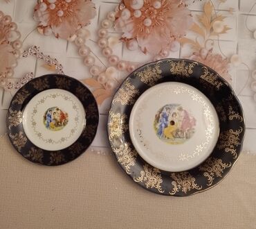 Тарелки старинные . Дулево. 5 штук. большие. 24 см диаметр . и 6 штук средние 19 см.3- е фото 2 штуки за 25 манат ,и разное. смотрите все фото. 2 большие глубокие блюда киев , пиялы для салата ,в...
