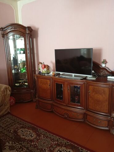 Mebel divar sistemi – klassik üslubda, qoz rəngində Xüsusiyyətlər: - Modul quruluş: bir neçə şkaf və vitrin bölmələrindən ibarətdir, birlikdə estetik vahid kompozisiya yaradır - Mərkəzdə şüşə qapı...