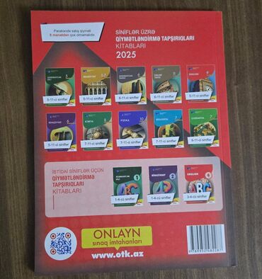 - Arxa səhifədə əlavə seriyalar: 5–11-ci siniflər üçün Azərbaycan dili, Ədəbiyyat, Azərbaycan tarixi, Ümumi tarix, Riyaziyyat, Kimya, Fizika, Biologiya, Coğrafiya; ibtidai siniflər (1–4-cü siniflər) üçün Azərbaycan dili, Riyaziyyat, English qiymətləndirmə tapşırıqları