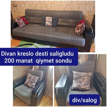 Şəkildə qeyd: “Divan kreslo dəsti saliqludu – 200 manat, qiymət sondur”.