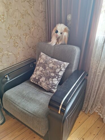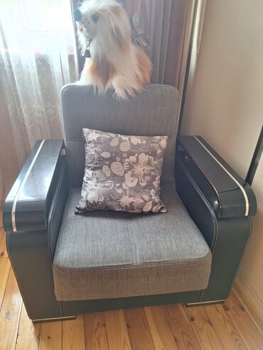 Divan və kreslo dəsti - Rəng: qəhvəyi və ağ kombinasiyası - Divan: açılır, bazalı (aşağıda saxlama yeri var) - Kreslo: geniş oturacaq, yanları yastıqlı - Yumşaq parça üzlük, yanlarda ağ süni dəri ...