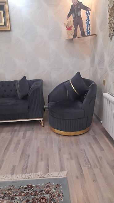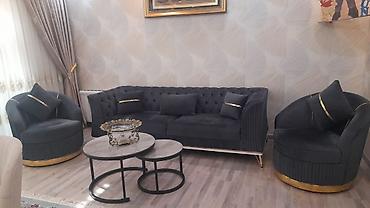 Qonaq otağı üçün dəst – qara/ford qrafit rəngli divan və iki ədəd fırlanan kreslo