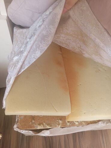 Mebel dəsti PULSUZ - Divan: Krem rəngli, yumşaq parçalı, klassik qabarıq bel hissəli model. Ön hissədə dekorativ qara detallar. Alt hissədə çəkicilər üçün nəzərdə tutulmuş tutacaqlar görünür. Geni...
