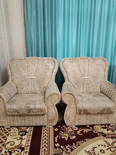 Mebel dəsti satılır - Divan: Açıq bej rəngli, yumşaq parça üzlü. Arxa
