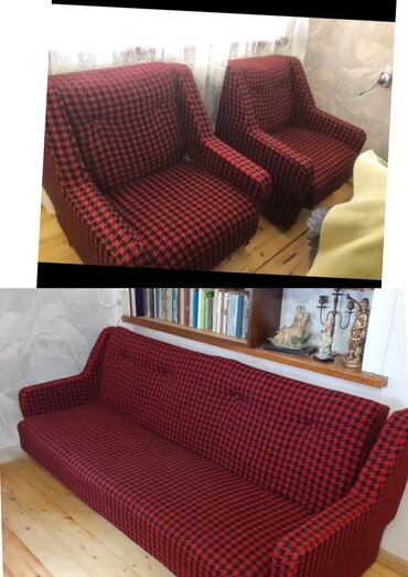 1 ədəd üçnəfərlik divan + 2 ədəd kreslo. Divan açılır çarpayı şəklində