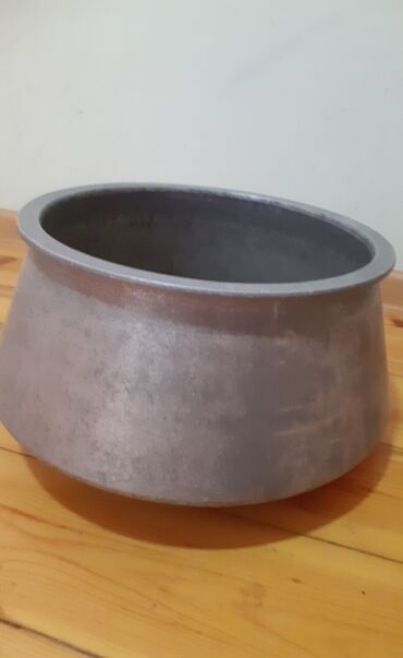Alüminium qazan – klassik “siniqli” formalı - Material: qalın divarlı alüminium - Ölçülər: daxili diametr təqribən 30 sm, hündürlük təqribən 16 sm - Şəkillərdə ölçü lentilə göstərilib - Geniş dib ...