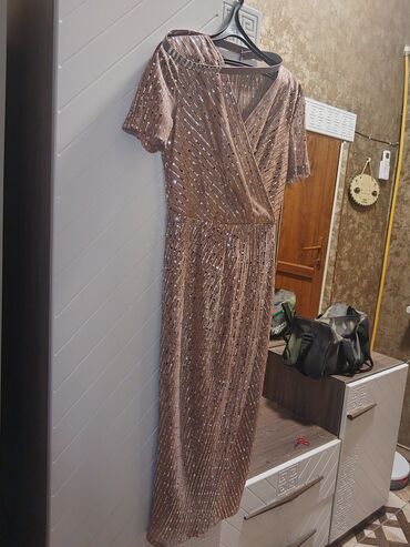 Zərif ziyafət/libas - Rəng: toz-çəhrayı (lilac tonlarında) - Model: uzun, A-kəsimli, yüngül flarlı ətək - Parça: şəffaf tül üst qat, incə romb naxışlı; altlıqla birlikdə - Yaxa: V-kəsim - Qol: 3/4...