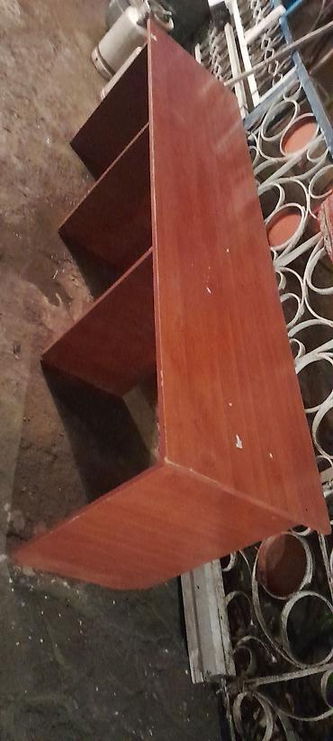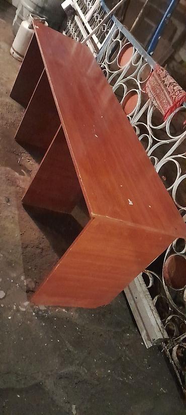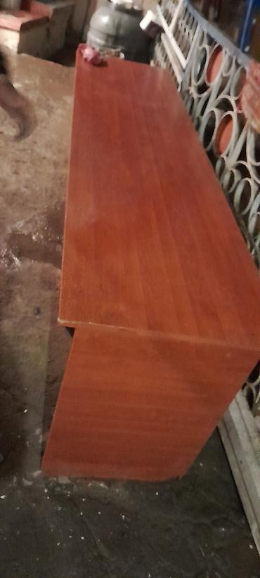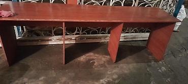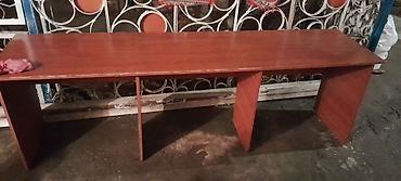 Uzun ofis masası – laminat/LDSP materialdan, ağac teksturalı qəhvəyi rəngdə.