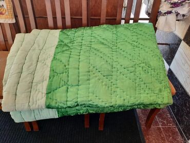 - Yorğan: Yaşıl tonlarda, əl tikişli naxışlı. İki qat parça (açıq yaşıl və tünd yaşıl) ilə. İsti saxlayan dolgu, dördkünc tikili.